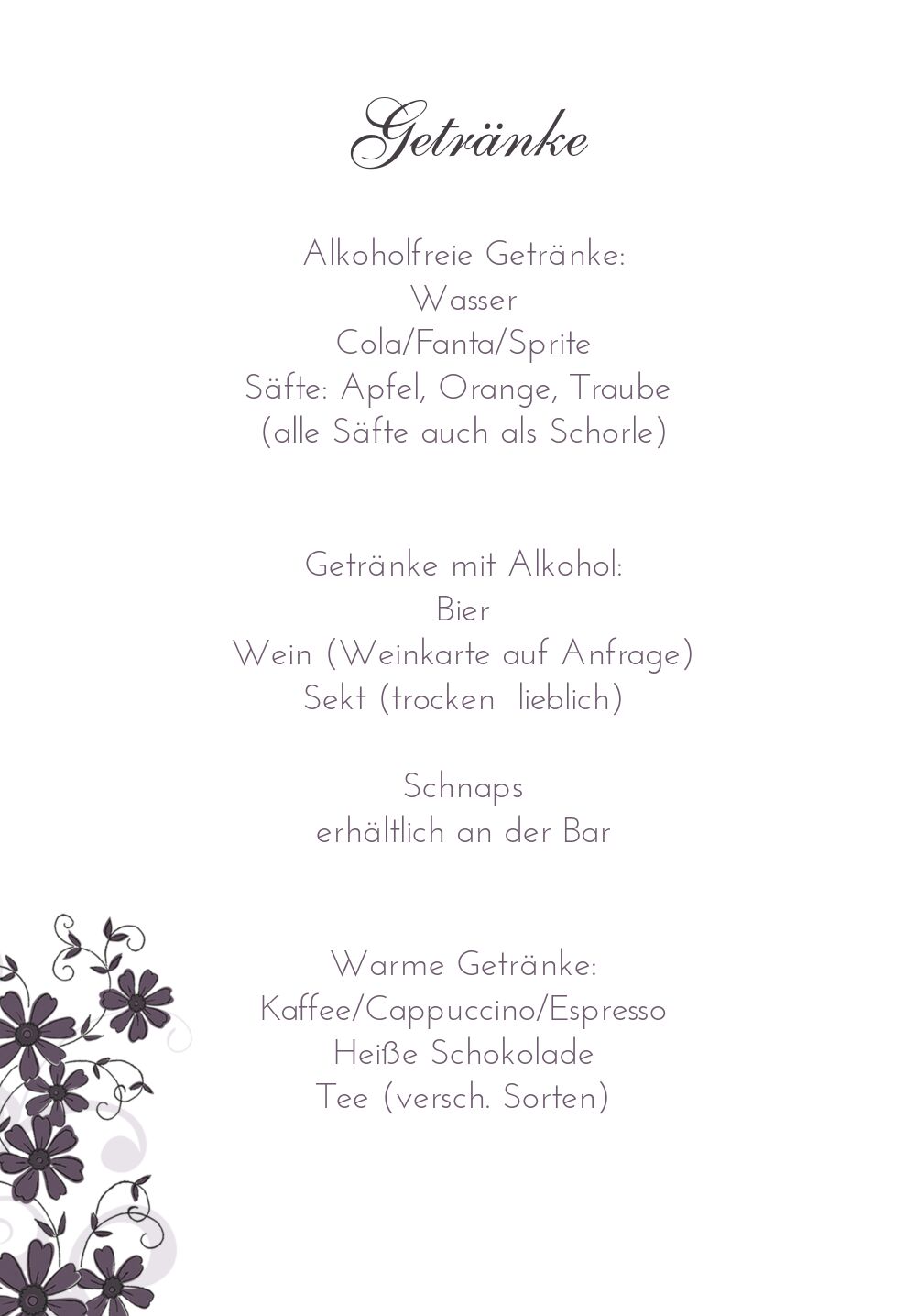 Hochzeit Menükarte Ranke