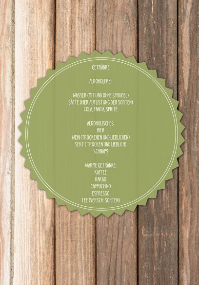 Hochzeit Menükarte Vintage Holz