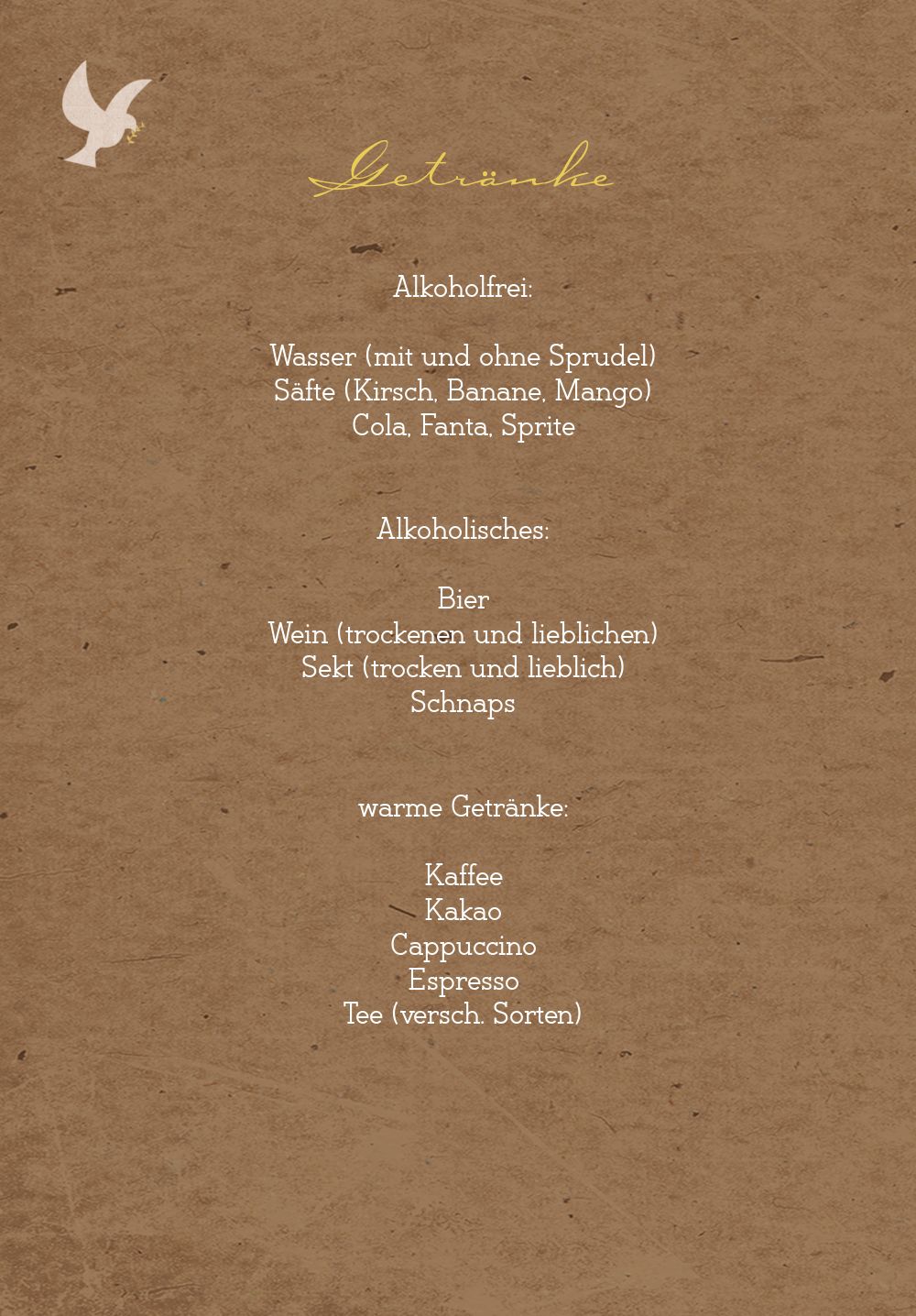 Kommunion Menükarte Flügelschlag