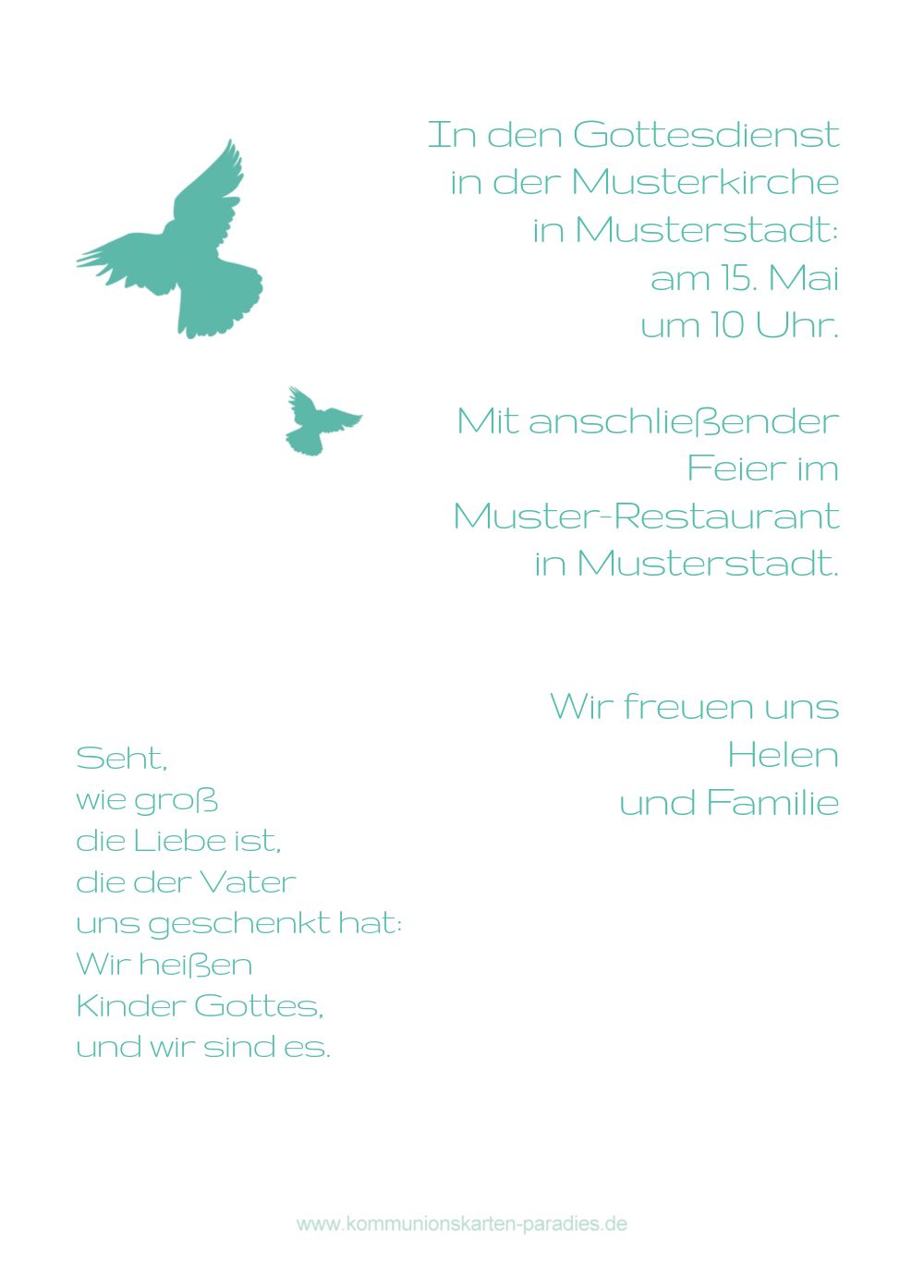 Kommunionskarte Taube